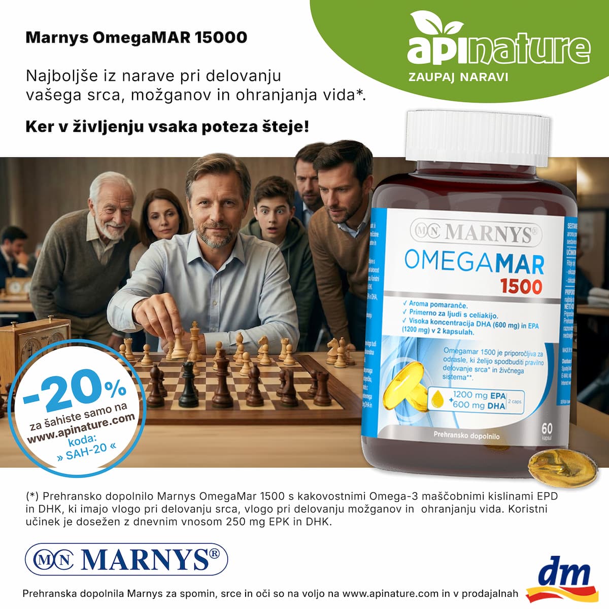 - Izžrebana nagrada med vsemi udeleženci (prehransko dopolnilo za spomin, srce in oči Marnys OMEGAMAR 1500 (ApiNature / Ecoathera d.o.o.)
